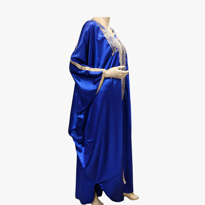 Elegant Tunisian royal blue thobe in a comfortable cotton blend with 3-quarter sleeves.