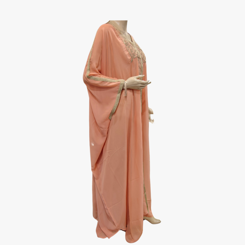 Elegant Tunisian pink thobe in a comfortable cotton blend with 3-quarter sleeves.