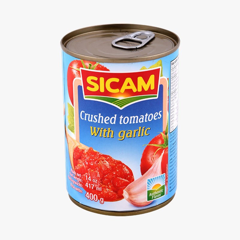 Elevate your cooking with Crushed Tomatoes With Garlic Sicam 400g, a delicious blend of juicy, sun-ripened tomatoes crushed to a smooth yet slightly textured consistency and enhanced with the savory depth of real garlic. This ready-to-use mixture saves prep time while delivering a rich, robust flavor that’s perfect for pasta sauces, pizza bases, curries, soups, and casseroles. Packed in a durable metal can to preserve freshness and quality, it’s a convenient pantry essential for busy households and passionate home cooks alike. With no artificial ingredients and the trusted heritage of Sicam, a leading name in tomato processing, this product offers a reliable, flavorful foundation for everyday meals. Whether you're making a quick weeknight dinner or meal prepping for the week, Crushed Tomatoes With Garlic Sicam 400g bring bold Mediterranean taste straight to your table.