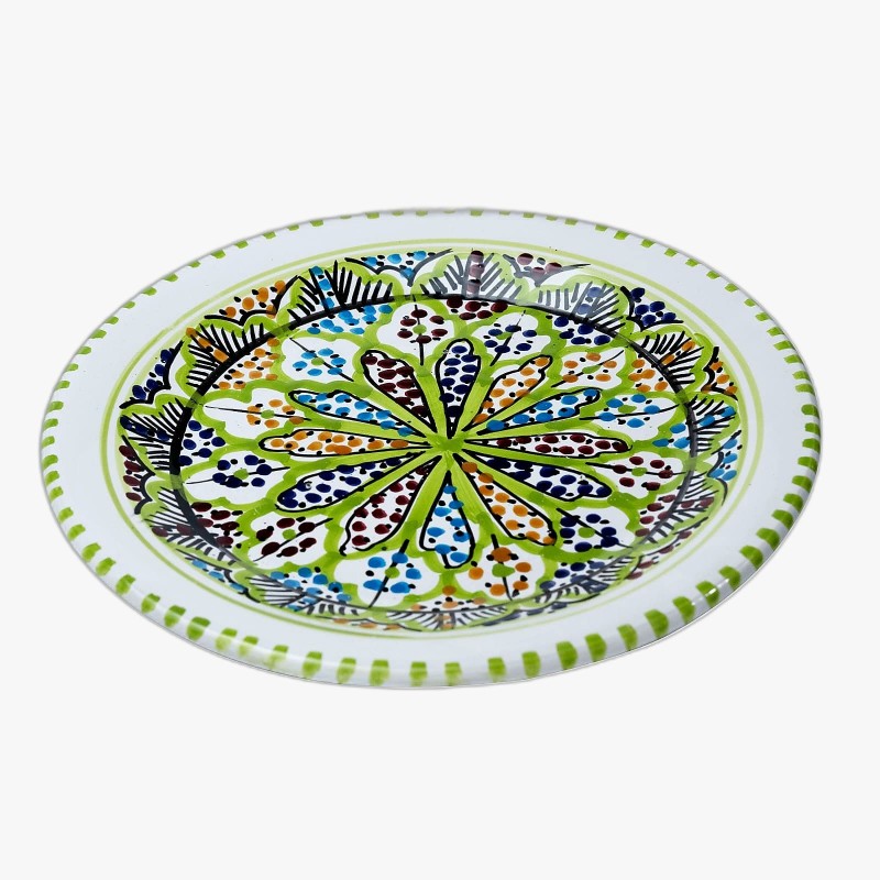 Handcrafted from high-quality ceramic, the Tubsi Plate features a deep, spacious design ideal for serving a variety of hearty dishes, from stews and tagines to rice and roasted meats. Decorated with intricate traditional motifs, it reflects the rich heritage of Tunisian craftsmanship while offering durability and everyday elegance. Lightweight and easy to maintain, this versatile serving piece is perfect for both casual dinners and festive occasions. Whether used at home or gifted to a loved one, the Tubsi Plate brings a touch of North African artistry to the table—ideal for those who appreciate handmade quality and timeless tableware.